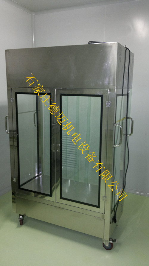 層罩內裝有過濾風機,中層空間為工作區(qū),方便人工操作,下層擱架可臨時儲物